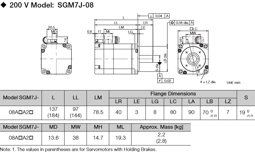 Описание Серводвигатель Yaskawa SGM7J-08AFC6S